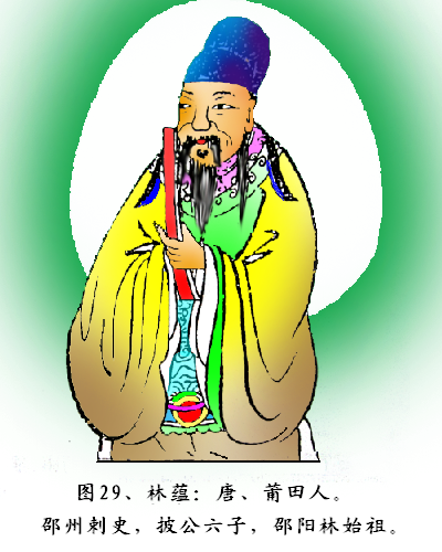 曾撰(拔镫序)。林蕴后裔分布在湖南省邵阳,湖北省黄冈,福建省莆田、仙游、永定,安徽省金寨.海南省,台湾.辽宁省,