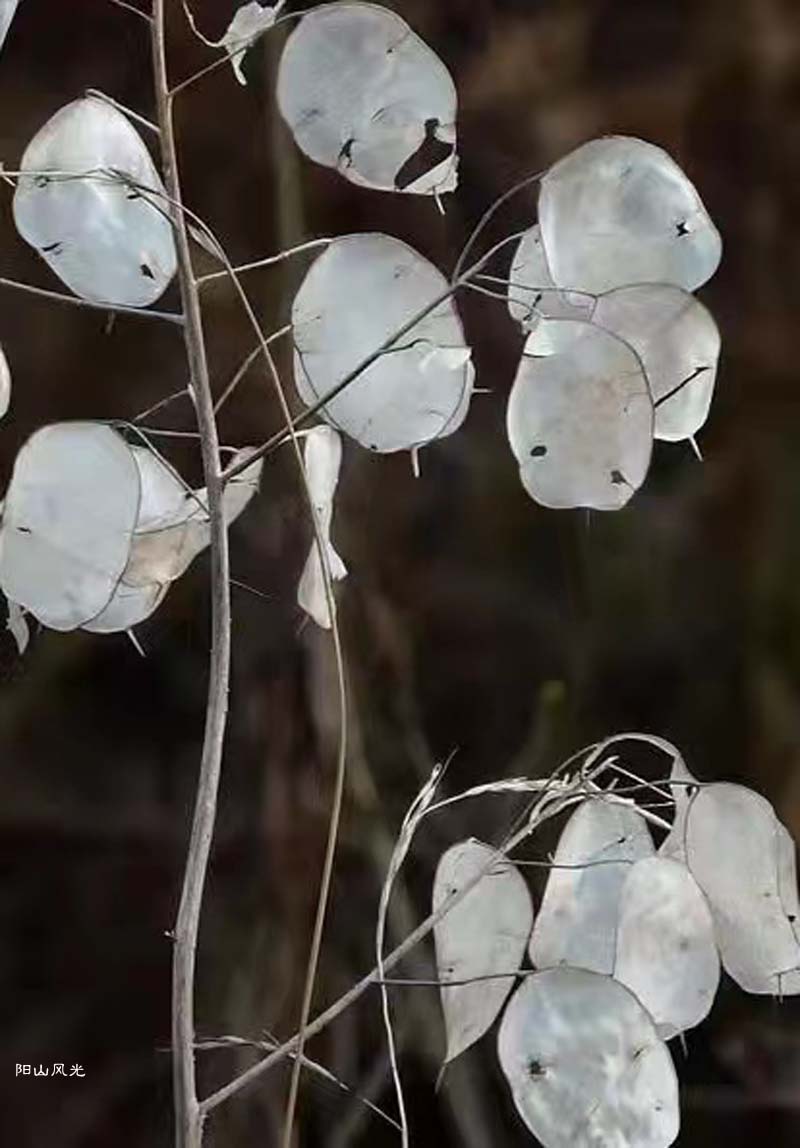 富贵之花银扇草,枝干细小叶微薄。花开白色或桃红,角果真当银币箔。
