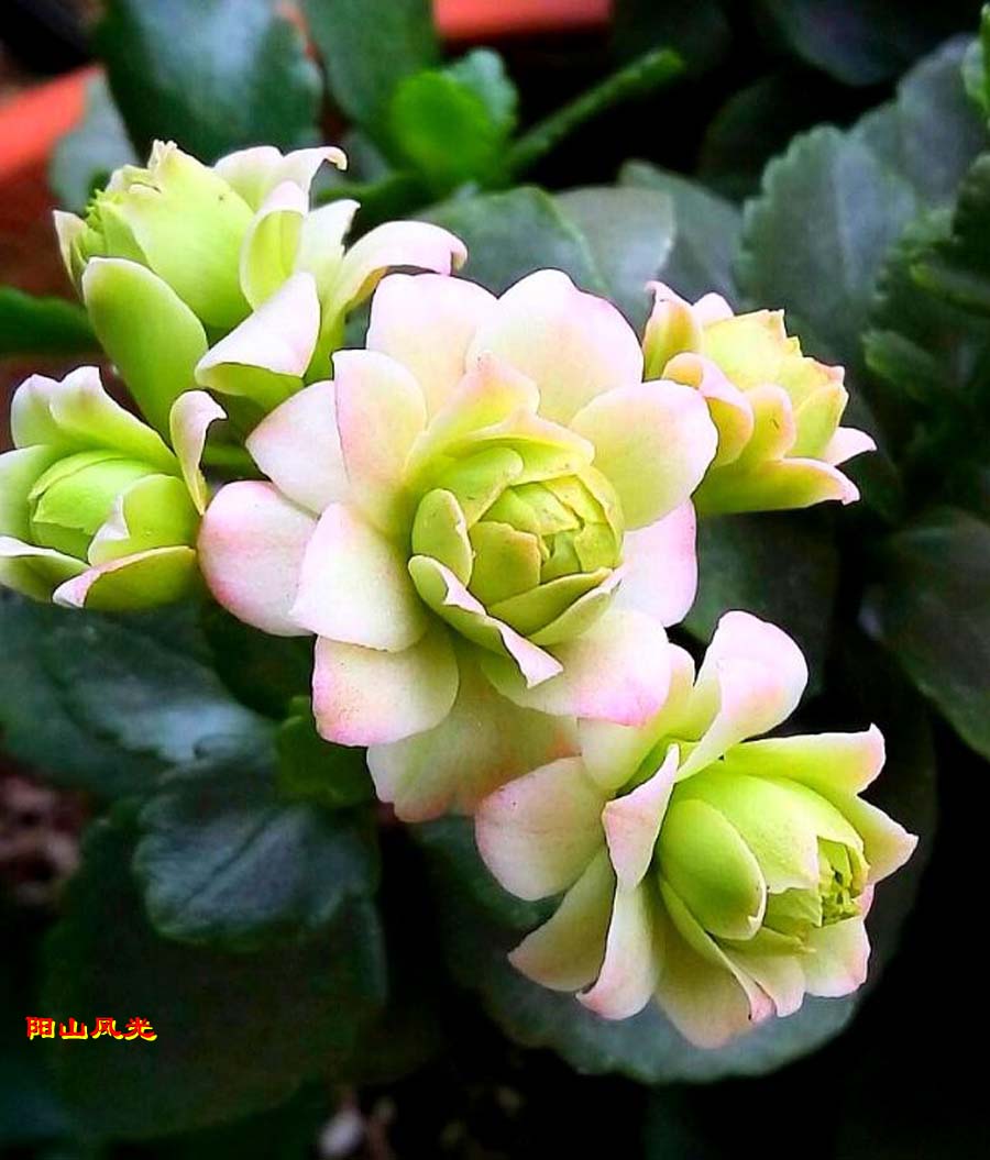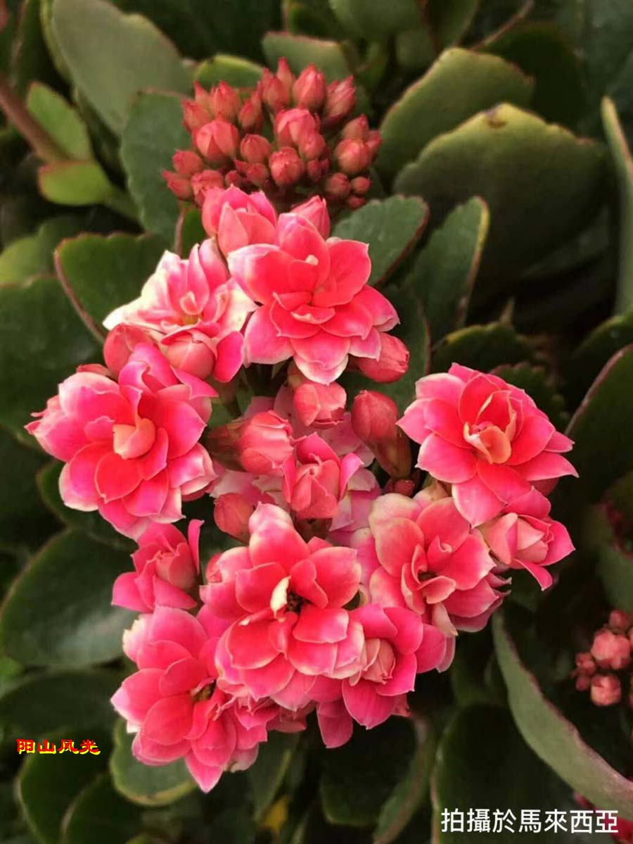长寿花神植物小,叶心翠绿玲珑晓。花儿密集色斑丰,国际市场少不了。